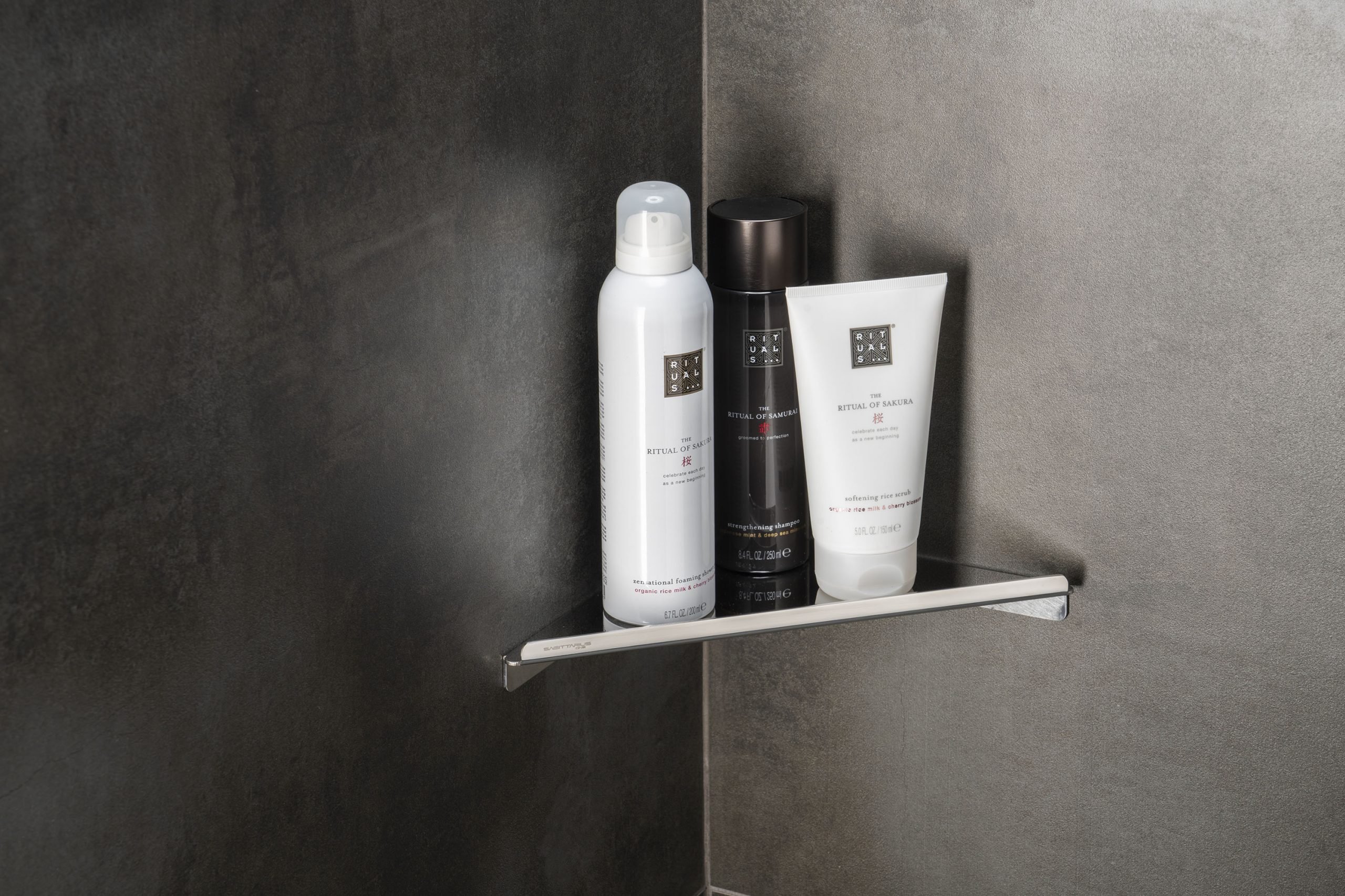 Dankzij het slimme bevestigingssysteem zijn slechts vier schroeven nodig om het doucherek te bevestigen aan de muur. Eenmaal bevestigd zijn er geen schroeven meer zichtbaar door speciale covers om een perfecte uitstraling te garanderen. Pluggen en schroeven zijn inbegrepen.